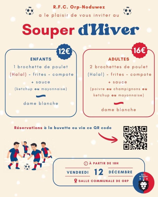 Vous n’avez pas encore réservé? Faites le vite, avant le 5 décembre… A la buvette, par le QR code ou en cliquant ici.